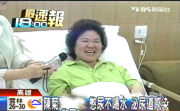 陈菊9日晚上出现呕吐、畏寒及腹腰痛等不适症状,前往高雄医学大学附设医院挂急诊,当时体温39度轻微发烧,经医院建议住院接受抗生素治疗。