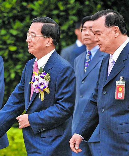 叶盛茂(右)受陈水扁(左)提拔出任前陈水扁当局情报机构主管,就连坐牢也将一路追随陈水扁到台北监狱。图片来源:台湾媒体