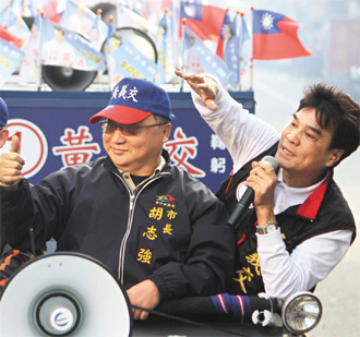 台中市长胡志强(左)昨天开始请假辅选,为民代参选人扫街拜票。(图片来源:台湾《联合报》)