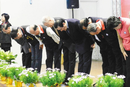 中国台湾网2月13日消息 据台湾《联合报》报道,正、副台湾地区领导人马英九、吴敦义昨到台中谢票,地方干部大排长龙,争相合影。主持人宣布马英九团体鞠躬表达感谢,但因弯腰时间太短,遭到马英九纠正。马英九称,鞠躬不能少于10秒钟,随即带领众人重新深深鞠躬,表达诚挚谢意。(中国台湾网 李迪)