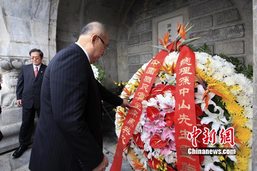 吴伯雄一行拜谒北京香山碧云寺孙中山衣冠冢。中新社记者 盛佳鹏 摄