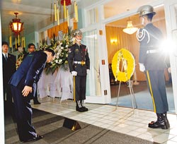 国民党副主席、蒋经国之子蒋孝严前往桃园头寮谒陵。 来源:台湾《中国时报》