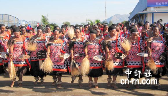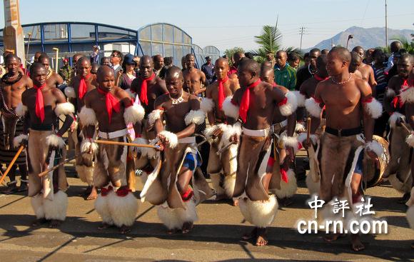 斯国男人也表演传统战舞接机。(中评社倪鸿祥摄)