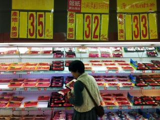 台湾“立法院”临时会25日“三读”修改通过食品卫生管理规定部分条文,未来符合安全容许标准的莱克多巴胺牛肉将可进口。图为消费者购买美国牛肉情形。图片来自台湾“中央社”