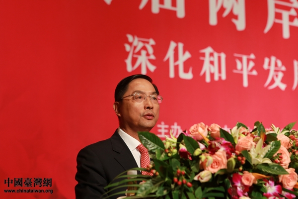 图:中共中央台办特邀嘉宾蒋耀平在第八届两岸经贸文化论坛上作题为《四年来两岸经济关系的回顾及对未来的展望》的主题演讲。(中国台湾网 于斯文 摄)