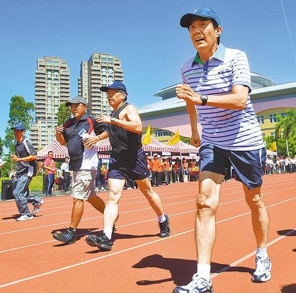中国台湾网9月9日消息 据台湾媒体报道,马英九昨日参加首长竞走比赛,花了2分36秒挥汗拼完400米全程,其他官员不敢造次,跟在他背后,依惯例让他拿冠军,但他对自己的成绩表示“不满意!”