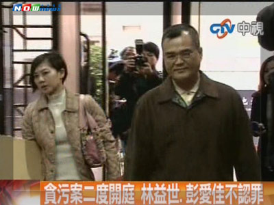 林益世与妻子彭爱佳进入台北地院法庭(图片来源:台湾今日新闻网)