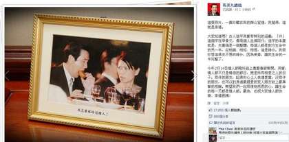 马英九说,“这张照片,一直珍藏在我的办公室里,我觉得,这就是幸福。”他认为,“伴”字像2个人并肩同行,造字本意为夫妻是1个整体,每个人都是对方生命中的另一半,从相识、相知、相惜,即是缘分。