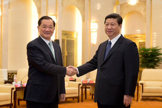 今天上午9时许,中共中央总书记习近平在北京人民大会堂会见中国国民党荣誉主席连战。