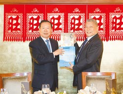 中国台湾网3月2日消息 据台湾《旺报》报道,两岸媒体交流愈来愈频繁,海协会副会长王在希2月28日率“海协会新闻媒体交流团”访台9天,旺旺中时集团总裁蔡衍明3月1日在台北设宴接待,蔡衍明除表示将持续扮演两岸沟通桥梁外,还说两岸中国人都是一家人,盼透过媒体加强两岸文化认同。