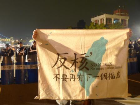 台湾环保团体在3月9日发动废核游行,诉求停止核四装填燃料、停止危险核电,核一二三尽速除役。图片来自台湾今日新闻网