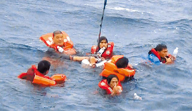 清晨5时半左右,台湾海巡人员赶抵,并救起6名船员,轮机长与一名渔工虽体温表征异常,但治疗后已脱离危险。(中国台湾网 李帅)