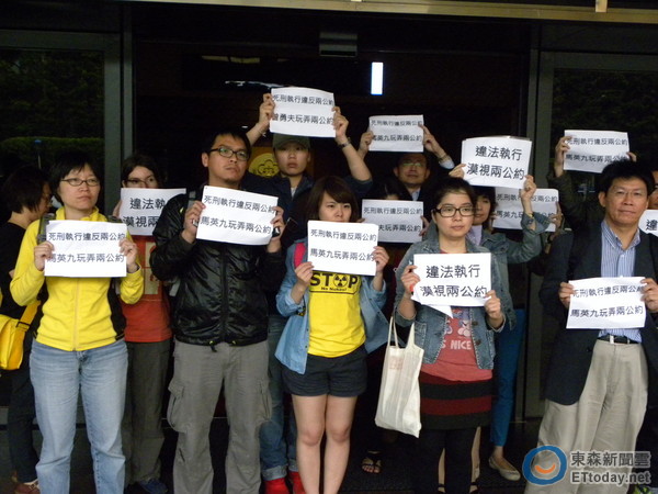4月19日,台湾“废死联盟”等民间团体前往台当局“法务部”抗议再次执行死刑。(图片来源:台湾“东森新闻网”)