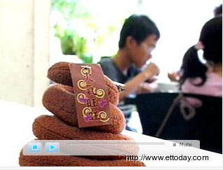 毛巾布做成的便便,卷成一圈又一圈,上头还停了苍蝇,小姐看得脸红,老外看得狂笑,捧着这坨便便又摸又闻的,爱不释手。