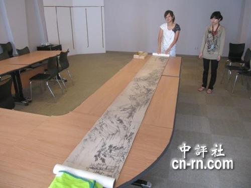 台北“故宫博物院”收藏的《富春山居图》长度639.9公分,宽度33公分。(中评社 康子仁摄)