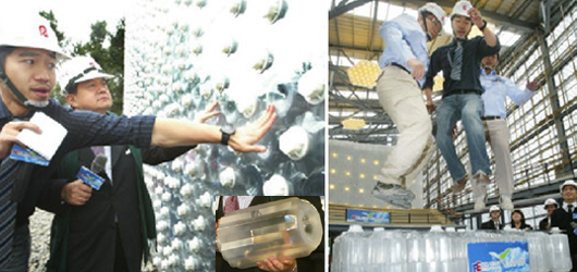 台湾每年产生24亿个以上的废弃宝特瓶,但回收再利用的宝特瓶仅占4%,其余均变成永久不坏的垃圾,严重破坏环境。两年前台湾远东集团透过旗下各个通路,向全台民众总共回收多达150万个废弃宝特瓶,经过清洗、打碎和融化等步骤制成独特的宝特瓶建材,并采用许多环保和建筑新技术,以达到抗风压和隔热保温效果,打造出写下7项世界第一纪录的远东“环生方舟”。