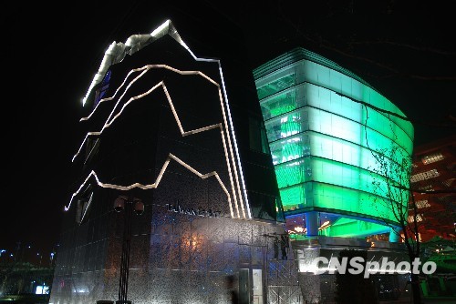 4月13日,台北举行“2010年上海世博会台湾馆启航记者会”,馆内设计及展演内容首度曝光。图为台湾馆刻有的名山陵线,在晚间十分清晰。(台北世贸中心供图) 中新社发 董会峰 摄