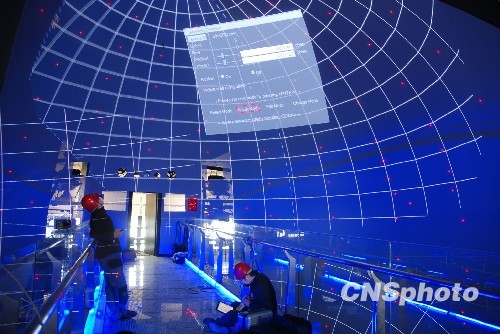 透过720度全天域球幕影院观赏,观众站在透明天桥上,看着四面八方天上地下都是影像,与一般电影院最大不同是,它完全没边框,观众完全被全天域屏幕包覆,彷佛置身其中,还有各种4D特效的搭配。