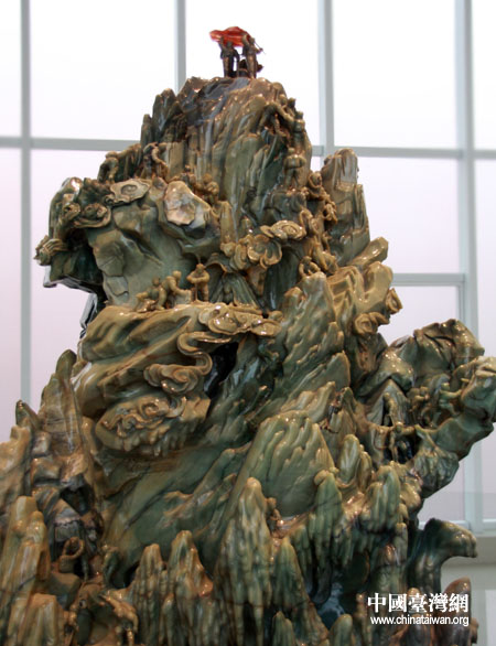 震旦馆展示的玉雕。(中国台湾网 张弛 摄)
