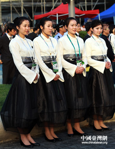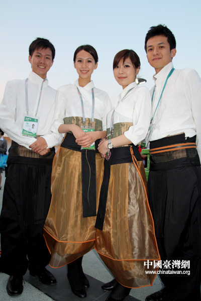 身着“天灯服”,台湾馆的亲善领航员们展现出浓浓书卷气(中国台湾网 张弛 摄)