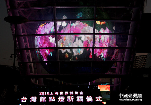 中国台湾网5月12日上海消息 上海世博会台湾馆11日晚间举行盛大的“点灯祈福仪式”,台湾馆通过馆内720度球幕设计,向世人展示台湾之美。(记者 钟宝华)