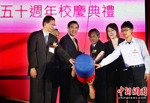 6月1日,台湾领导人马英九出席台北医学大学50周年校庆典礼活动。据悉,这所大学建校以来培养出3万多名优秀人才,办学中学校注重培养学生的人文素养和社会责任感。中新社发 宋吉河 摄