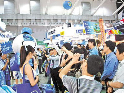 台北国际电脑展预计有12万人次参观,其中包含国际买家35000人,因此宏碁、华硕、威刚、台达电、技嘉、仁宝等台湾重要科技厂商,几乎没有例外统统都参与。大陆厂商也看上这庞大商机,包括汉王、比亚迪、神州数码、万利达、惠科电子等厂商亦积极加入。