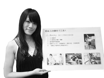 大三的Becky(图),生活费和学费都靠自己打工赚取。她本是戏剧系学生,曾在“如果剧场”打过工,拥有丰富的舞台经验,很喜欢尝试各种不同的工作,甚至还考出了电焊丙级证书。
