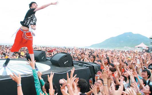 中国台湾网7月10日消息 据台湾《联合报》报道,台湾第十一届贡寮国际海洋音乐祭昨天登场,首日由苏打绿乐团、神棍乐团和歌手卢广仲、张震岳轮番上场,从白天唱到黑夜,high翻满场粉丝。台北县政府估计昨天约15万人涌进台北县福隆海水浴场。