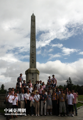 参加“情系八桂-两岸文化联谊行”活动的嘉宾今天来到昆仑关战役旧址悼念先烈。图为两岸嘉宾在战役阵亡战士纪念塔前合影留念。(中国台湾网 张弛 摄)