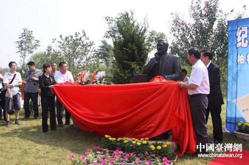 河南省委常委统战部长刘怀廉,省台办主任宋丽萍,省文联主席马国强等为柏杨纪念铜像揭幕。图片来源:河南省台办