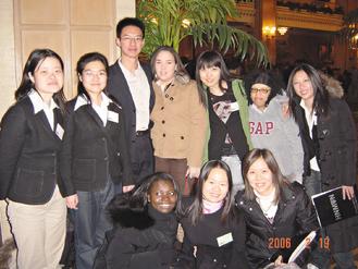 杨乔(前排中)来大陆求学时,申请到奖学金,赴外参与青年会议。图/杨乔提供 图片来源:台湾《联合报》