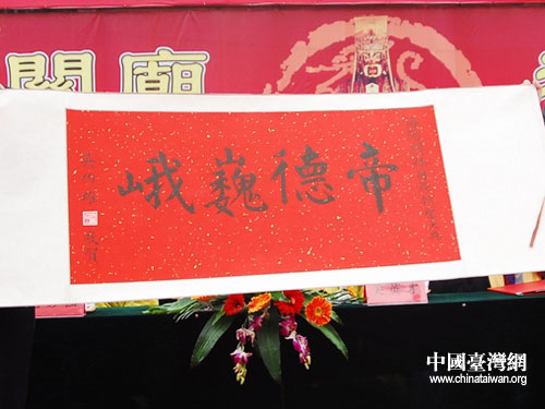 中国国民党荣誉主席吴伯雄贺词:帝德巍峨。图片来源:洛阳市台办