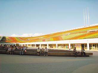 如何把全数21万盆的草花摆上足球场的看台,还要呈现出“七道彩虹”的图案是个大工程。丁锡镛说,考虑过摆设斜放的盆架装置草花,也曾想过编置藤架供草花攀藤生长,后来决定在看台搭设底座,然后依照图案上色,种花的工人只要依照底座的颜色,把相对应的草花放进花盆中就错不了。