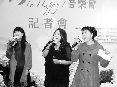 图为台湾声乐家简文秀(右一)等在记者会上演唱歌曲“甜蜜蜜”。图片来源:人民日报海外版