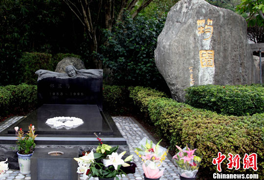 在台北金宝山邓丽君墓园,她的黑色大理石墓棺躺在园子最深处,歌迷们供养的百合在墓前散着幽香。墓碑上,简洁地刻着:邓丽筠,1953-1995。中新社记者 关向东 摄