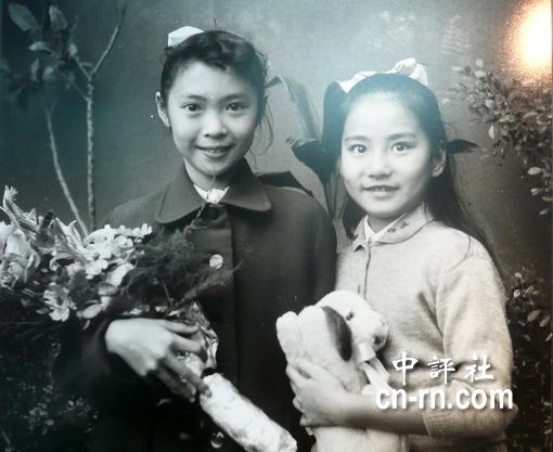 当时还是童星的金马影后萧芳芳(左)与台湾名主持人张小燕(右),1957年10月30日连袂向蒋介石祝寿。图片来源:香港“中评社”