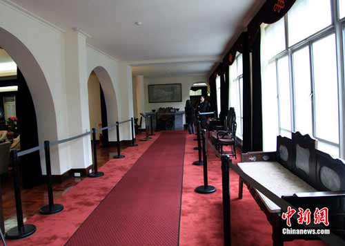 1月2日,台北士林官邸正馆正式开放。士林官邸正馆整个一楼铺陈着宋美龄喜爱的暗红地毯,大、小会客、餐厅,夹在两侧长长的甬道间。中新社记者 关向东 摄
