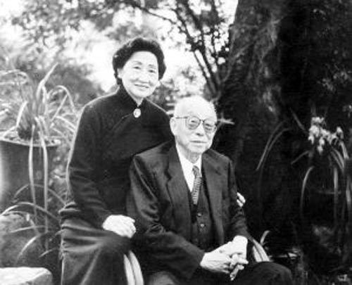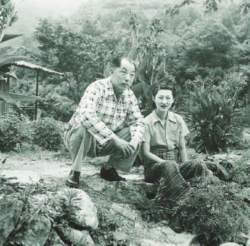 张学良(左)和赵四小姐在新竹。