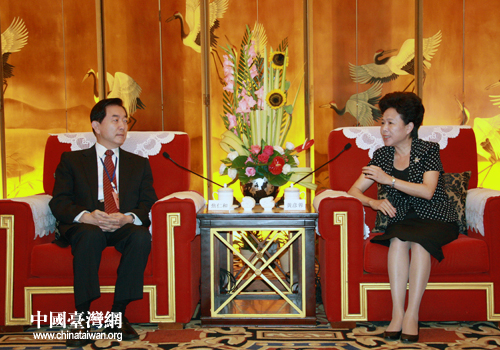 11日,“情系巴蜀——两岸文化联谊行”活动在成都开幕。图为四川省副省长黄彦蓉会见前海基会副董事长焦仁和。(中国台湾网 赵辉 摄)