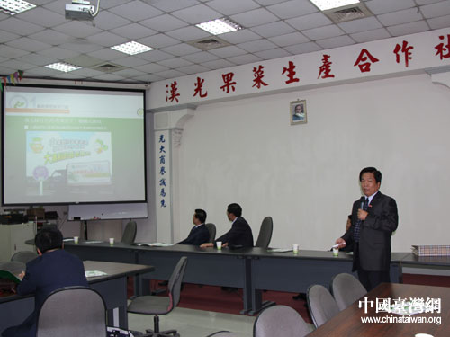 台湾云林汉光果菜生产合作社董事长廖丁川介绍汉光关情况。(潍坊台办段文忠 摄)
