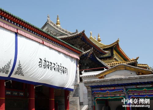 塔尔寺大金瓦殿一角,屋顶为黄金制成。(中国台湾网 杨云涛 摄)