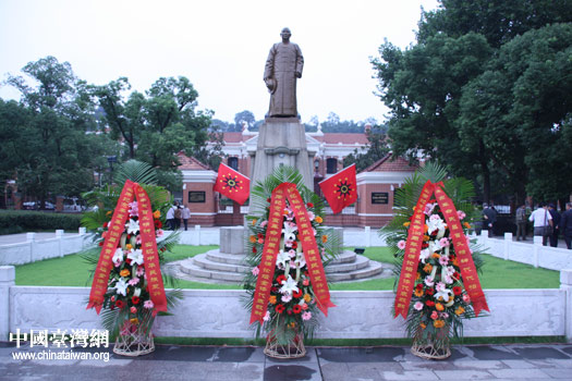 8日上午,以黄埔同学会会长林上元为代表的黄埔同学,及海内外黄埔组织代表、黄埔后裔及亲友等20余人,在辛亥革命武昌起义纪念馆拜谒孙中山先生铜像,并敬献了花篮。(中国台湾网 李丹 摄)