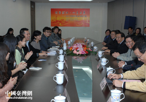 上海市委常委杨晓渡等领导与台湾学生座谈(上海市台办 葛凤章 摄)