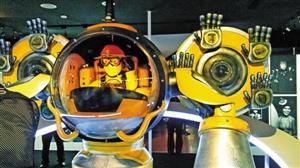 展路的尽头,“十全乾隆”耸立眼前,这是一架附有十只手掌,拼贴帝冠、朝服及龙形的飞行器。“小乾隆”就坐在驾驶舱中望向四方,身后十只手掌握有十大影响乾隆艺术品位的文物符号,成就了所谓的“十全”。(刘瑜 文/图)