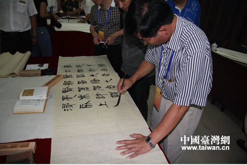 陈志声在进行书法创作(中国台湾网-芜同摄)