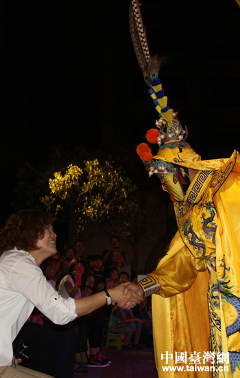 艺术家表演节目变脸并近距离与台下观众互动。(中国台湾网 高斯斯 摄)