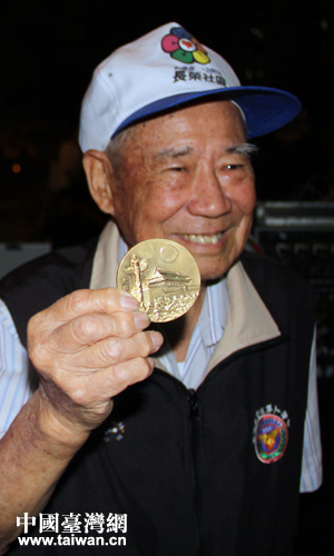 86岁的台湾老兵向记者展示自己去北京游玩时购买的纪念币。(中国台湾网 高斯斯 摄)