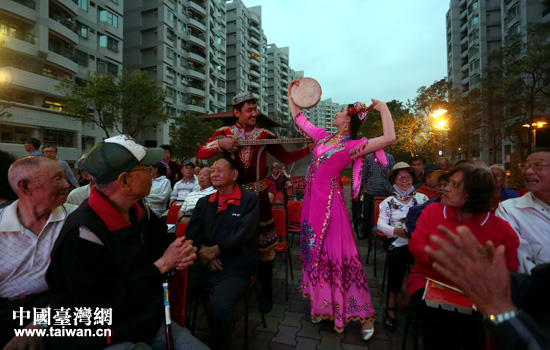 新疆歌舞团与社区观众亲切互动。(中国台湾网 高斯斯 摄)