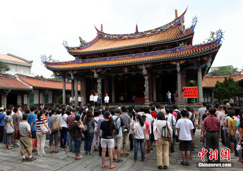 6月21日,台北市孔庙举办“高中登科·考生祈福”典礼,百余位考生及家长参与